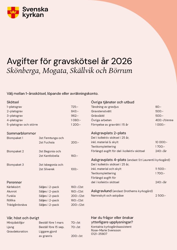 Gravskötsel prislista 2026, Skönberga, Mogata, Skällvik och Börrum